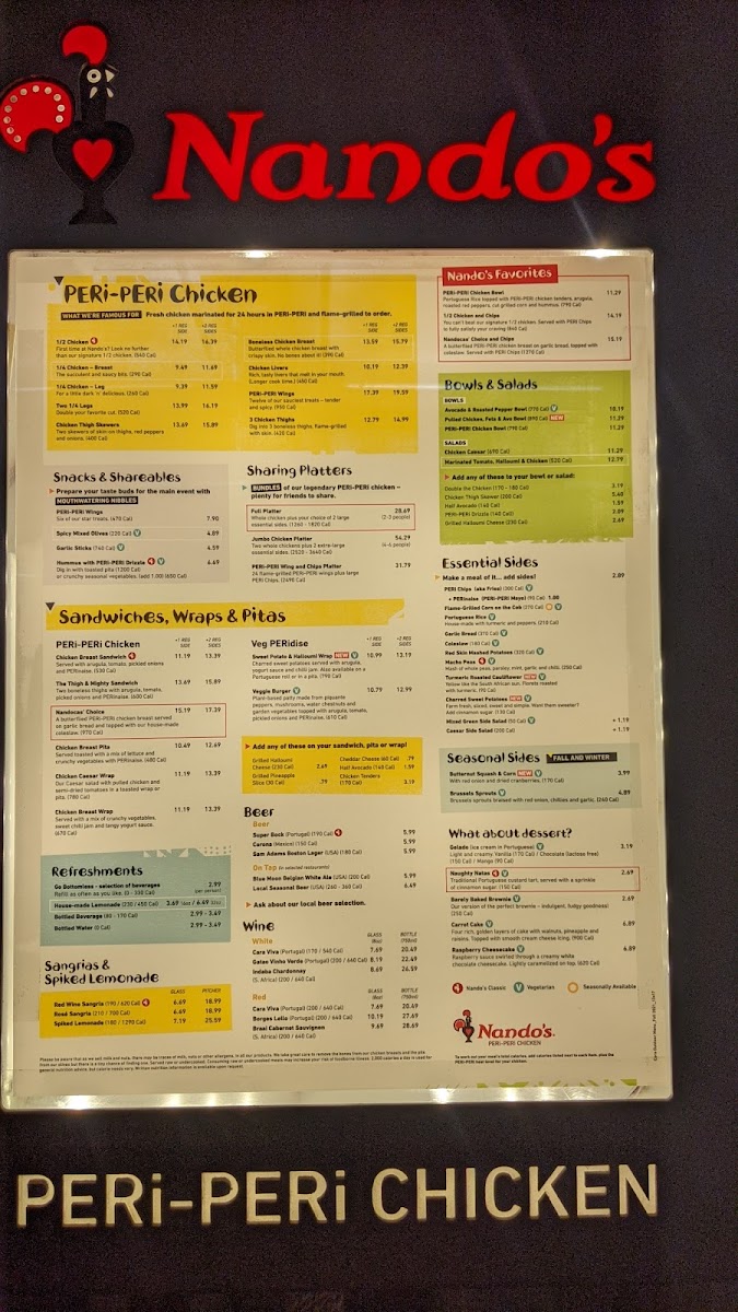 If you're looking for variety, the menu features flavorful sides like mashed potatoes, corn, and garlic bread, though be mindful of portion sizes according to some reviews. The ambiance is lively, with great city views, especially from the window seating. Whether dining solo or with friends, Nando's promises a flavorful experience worth returning for.